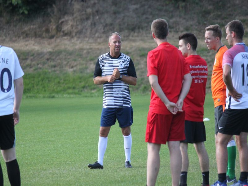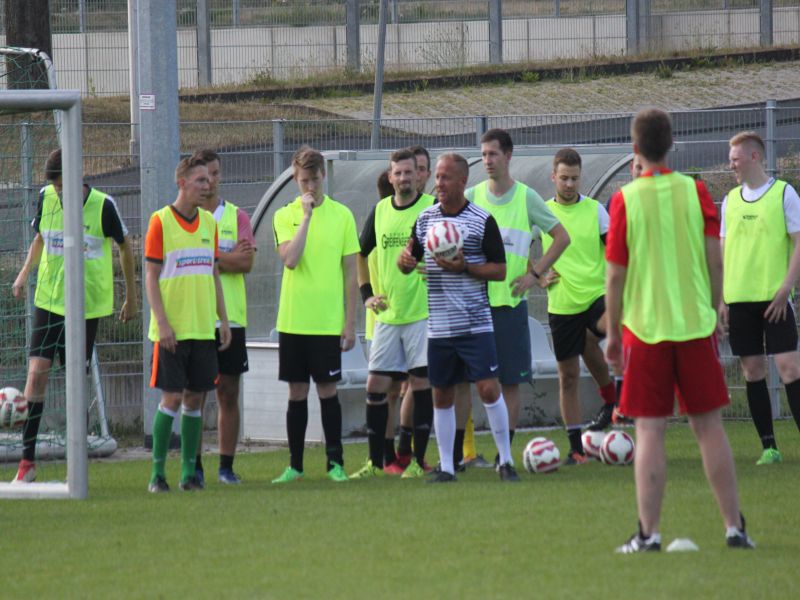 27 Akteure begrüßte Neutrainer Mario Bierschenk zum ersten Mannschaftstraining im Sportpark. Darunter sechs der acht Neuzugängen die in der kommenden Spielzeit das TSV Trikot tragen werden. Nachdem seit dem 25.6. die Schwerpunkte überwiegend im Ausdauerbereich lagen, stand für die erste Einheit auf Rasen Koordination und Übungen am Ball im Vordergrund. Nach der Einheit ließ es sich Mario Bierschenk nicht nehmen seinen "Einstand" zu geben und lud sein neues Team zu Bratwurst und Getränken ein. Neben einem spannenden WM Viertelfinale das man im Clubraum gemeinsam ansah, hatte man noch reichlich Gelegenheit sich in lockerer Atmosphäre auszutauschen. Knapp vier Wochen bis zum 5.8. hat das neue Trainergespann nun Zeit die Jungs in Form zu bringen um gut vorbereitet zum ersten Pflichtspiel beim SVH Kassel anzutreten. Zuvor steht aber noch ein Kreispokalspiel der 2. Runde beim SVB 07 Kassel auf dem Plan. Hier will man seiner Favoritenrolle gerecht werden und in die dritte Runde einziehen.