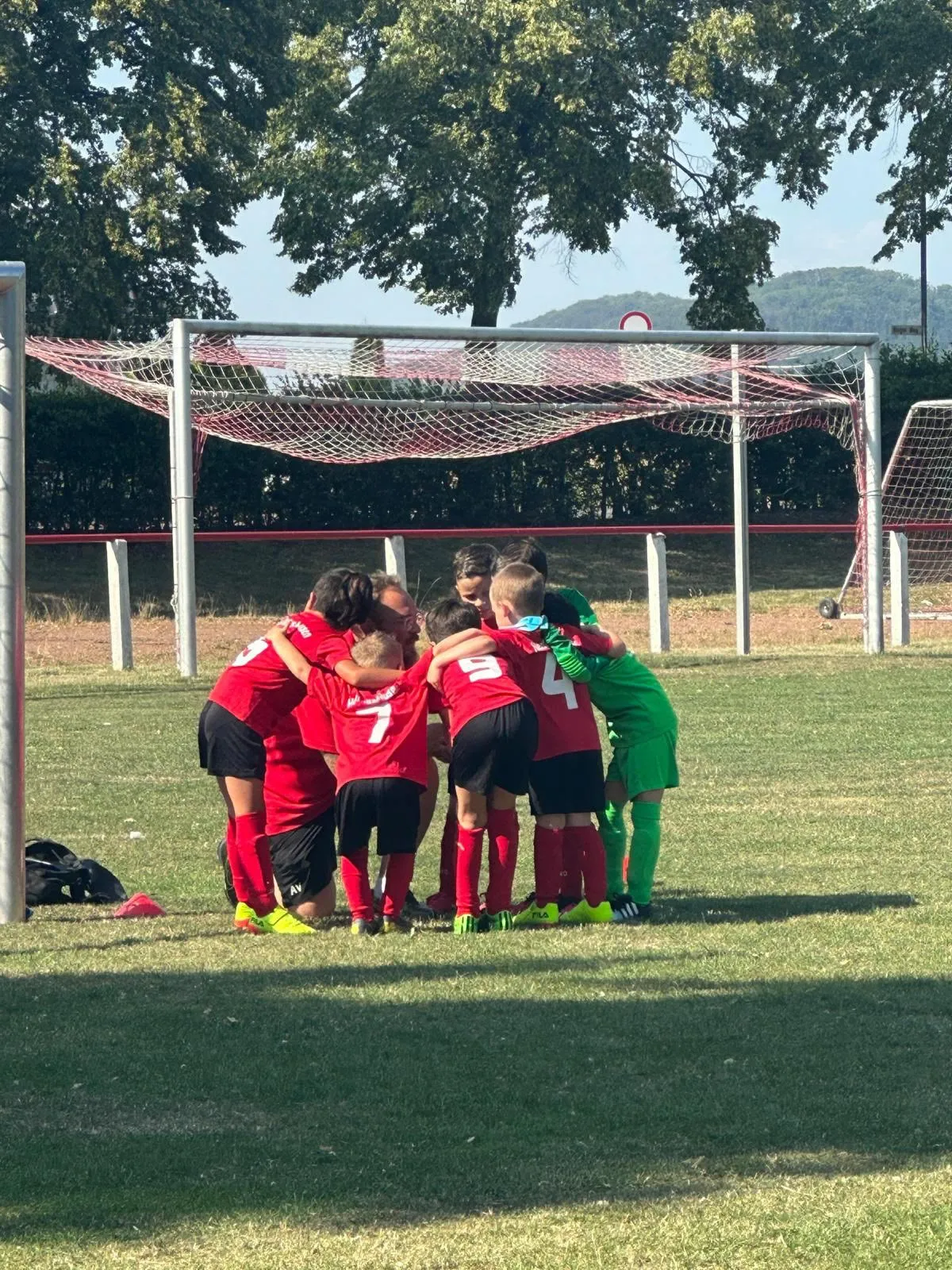 Nachdem wir bei großer Sommerhitze nach zweimal 8 Minuten Spielzeit mit 3:1 führten und das Spiel eigentlich vorbei war, legten die Kids auf Nachfrage des Trainers der Gastgeber weitere zweimal acht Minuten nach. Mit breiter Brust und erspieltem Selbstvertrauen aus der ersten Partie nahmen wir die Herausforderung an und durften auch im zweiten Vergleich einen 3:1 Erfolg feiern. Den Jungs war die Freude nach dem Derbysieg anzusehen und so feierten wir unseren ersten Sieg im ersten Spiel. Glückwunsch an die Kinder und ihrem Trainer Allessandro!
