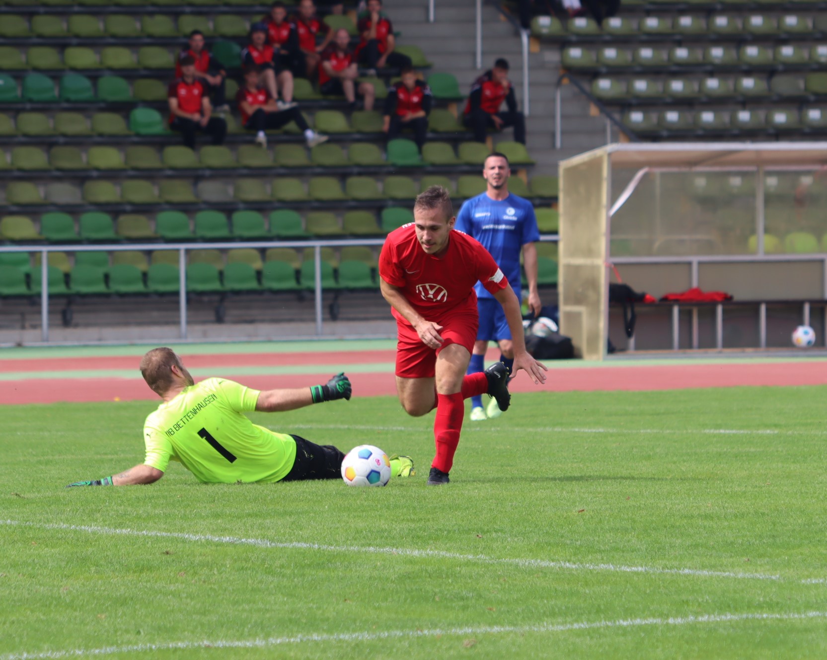 Nach den zuletzt deutlichen Pleiten stand die TSV Erstvertretung im ersten „Heimspiel“ gegen den Aufsteiger aus dem Werra Meißner Kreis schon fast mit dem Rücken zur Wand. Um nicht im Tabellenkeller stecken zu bleiben musste und sollte also ein erster Dreier her. Die Voraussetzungen dazu hätten im Vorfeld der Partie aber besser sein können. So musste Christian Döhne kurz vor der Partie verletzungsbedingt passen und zu allem Übel war für Kevin Klingmann schon nach 10 Minuten Schluss. Dennoch präsentierte sich der Gastgeber auf ungewohntem Geläuf im Parkstadion vom Anpfiff an als Herr im Haus und kreierte im ersten Durchgang Chancen im 5 Minutentakt. In dieser Phase erwies sich Gästekeeper Jan Just als großer Rückhalt und hielt sein Team im Spiel. Keiner der knapp 200 Zuschauer im Sonnendurchflutenden Parkstadion hätte etwas sagen können, wenn die Gastgeber bis zum Pausenpfiff des sehr gut leitenden Unparteiischen Paul Hohaus bereits deutlich in Führung gelegen hätten. So scheiterten Martin Pierog, Jan Kraus und Tom Zimmermann mit guten Chancen entweder knapp am Tor vorbei, am Aluminium oder eben an Jan Aust. 0:0 zur Pause also eher schmeichelhaft für die fairen Gäste.