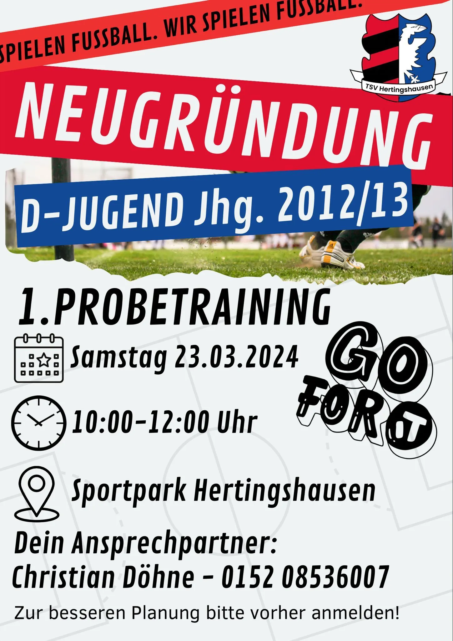 Am Samstag den 23.3.24 bietet die Jugendabteilung von 10.00-12.00 Uhr ein Probetraining im Sportpark Hertingshausen an. Unter der Leitung von Christian Döhne haben interessierte Kinder der Jahrgänge 12/13 Gelegenheit sich ein Bild von Team und Umfeld zu machen. Sei dabei! Wir freuen uns auf dich!