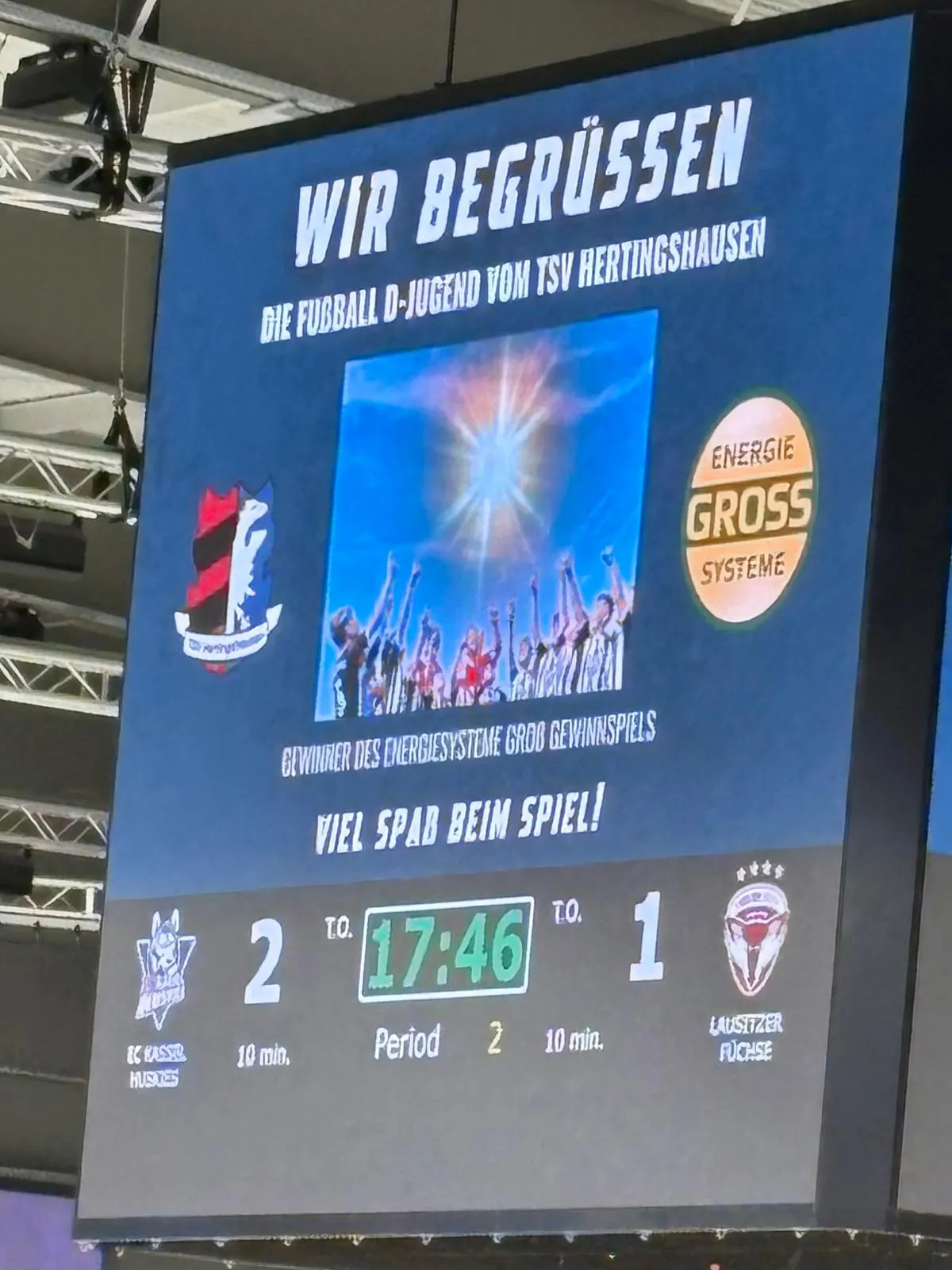 Am vergangenen Sonntag ging es für die Kids von Trainer Maik Ambrosius mal nicht um das Runde Leder. Es stand ein gemeinsamer Ausflug zu einem Spiel der Kassel Huskies in der Probonia Arena auf dem Plan. Zu verdanken war dieses besondere Ereignis der Firma ESG Energiesysteme Groß aus Niestetal. Sie veranstalteten ein Gewinnspiel an dem sich unsere D-Jugend angemeldet hatte und den Hauptgewinn erzielen konnte. Unter dem Motte "Sonnen-Power-Pose" sollte ein kreatives Teamfoto erstellt und eingesendet werden.